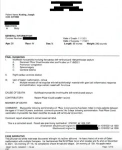 According to the autopsy report and certificate of death, Joseph died from severe heart damage from “myocarditis in the left ventricle due to the recent Pfizer COVID-19 booster vaccine.”