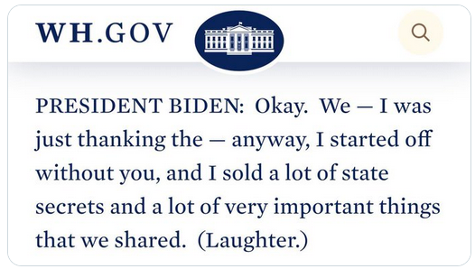 Biden, uh uh, anyway. I started off without you, and I sold a lot of state secrets