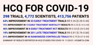 There have been 298 Hydroxychloroquine studies that show a 64% improvement in patients for COVID-19 patients.