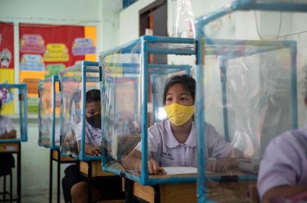 When August rolled around, we were pleased to get a message from our children’s school that they would resume normal school operations. No social distancing, no masks, no plexiglass cages around the desks (example below), just normalcy once again as it should be.