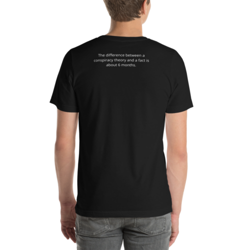 The difference between a conspiracy theory and a fact is about 6 months Short-Sleeve Unisex T-Shirt $24 – $31Price range: $24 through $31 Select options