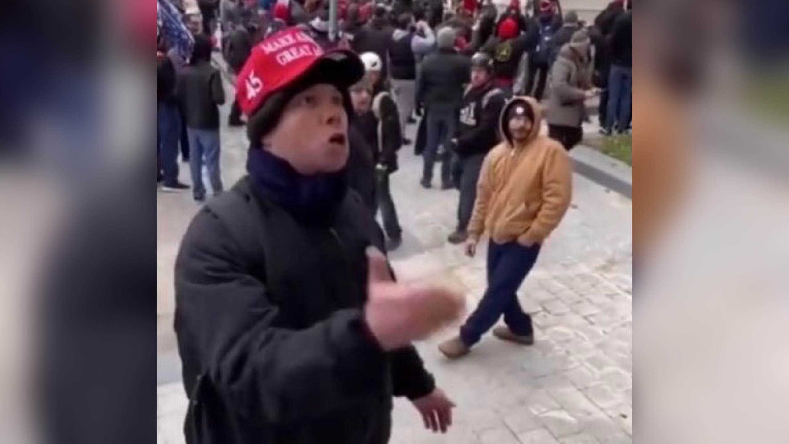 This unidentified man in a MAGA hat approaches Capitol Police, who are seemingly calm standing off to the side of the Capitol, while it is being stormed and asks “why are you allowing this to happen?”